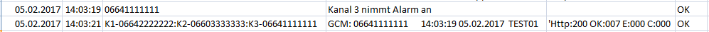 In der aktuellen Logdatei am Übertragungsgerät wird dieser Eintrag protokolliert.